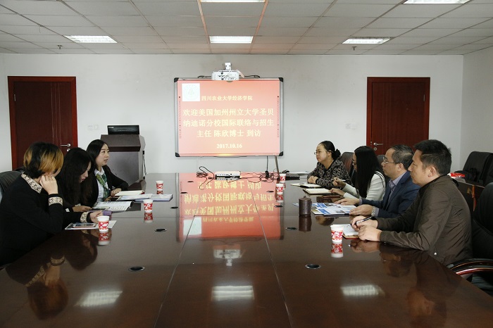 10月16日上午,应永利集团88304官网在线登录邀请,美国加州州立大学圣贝纳迪诺分校国际联络与招生主任陈欣博士、中国西区代表张杨和刘姝老师到访我校。学院院长蒋远胜教授、副院长吴平教授、国贸系主任沈倩岭副教授、行政办主任姚霞等参加了会谈,会议由沈倩岭副教授主持。