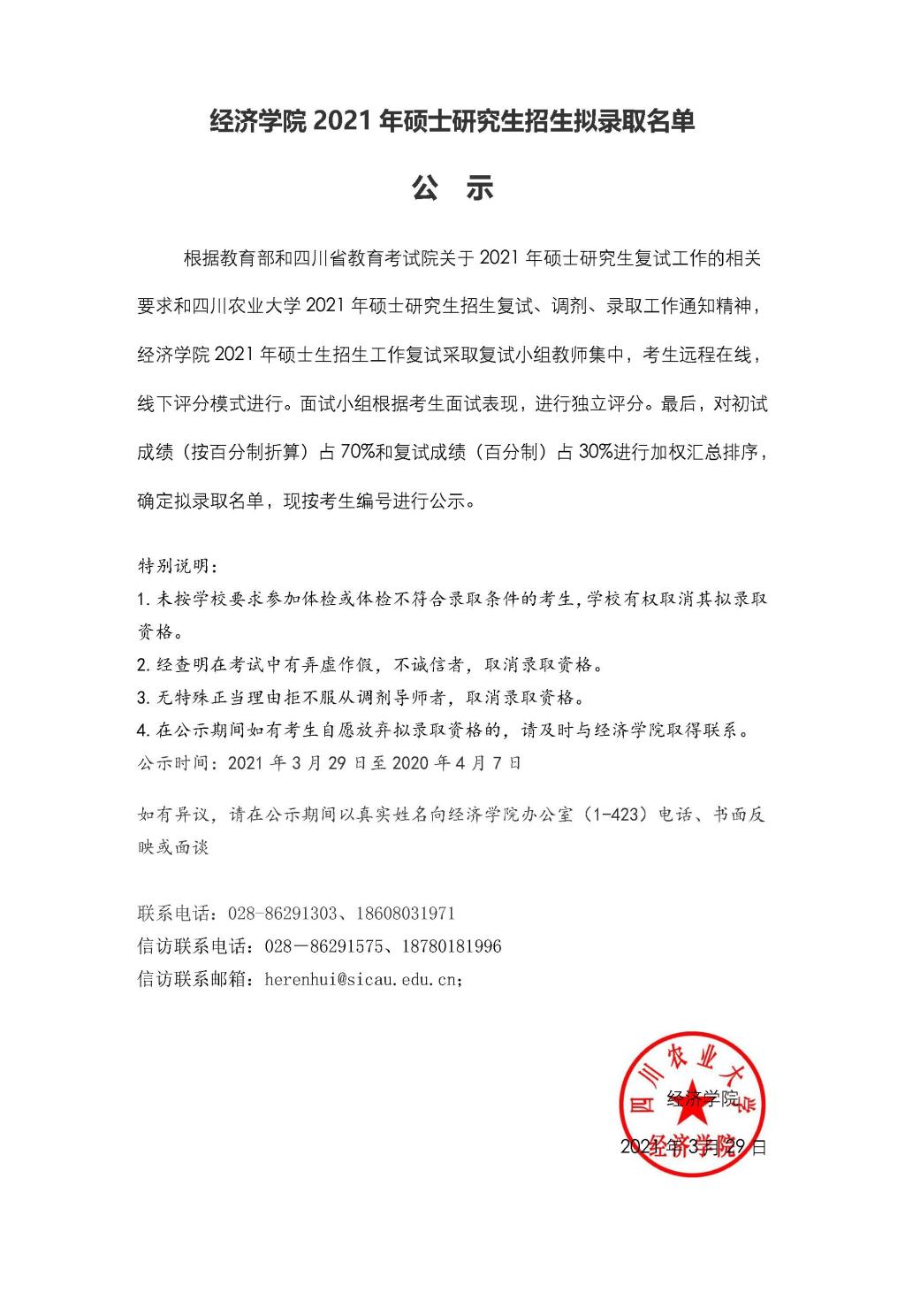 永利集团88304官网在线登录2021年研究生候补公布