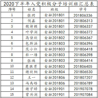 经个人申请、党支部提名、学院党委审核,现将永利集团88304官网在线登录2020年下半年入党积极分子培训班拟推荐学员名单公示如下。