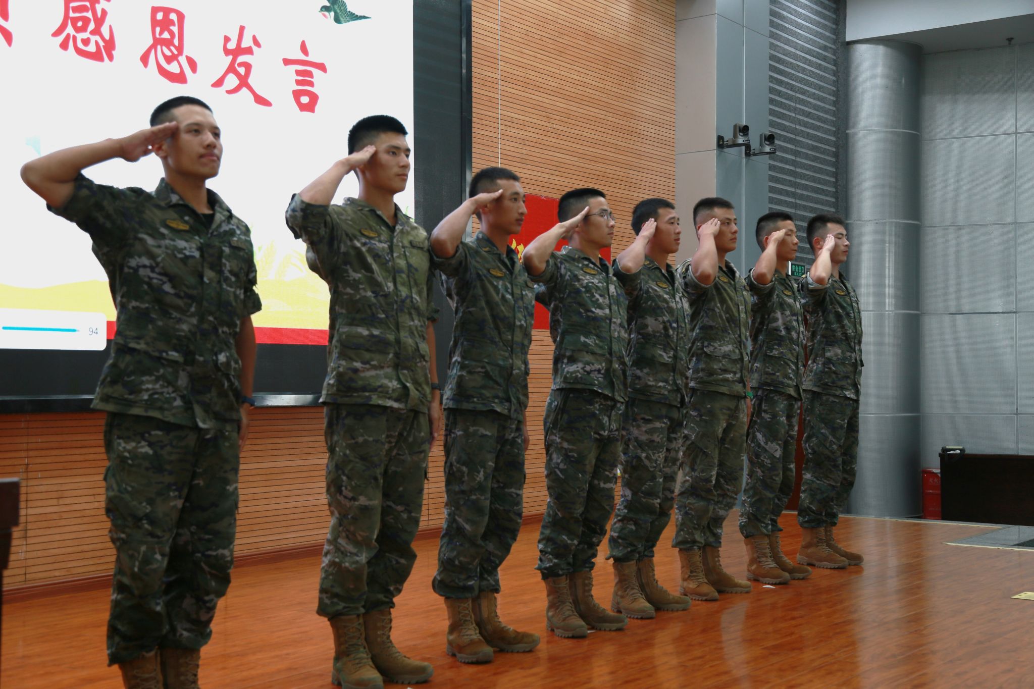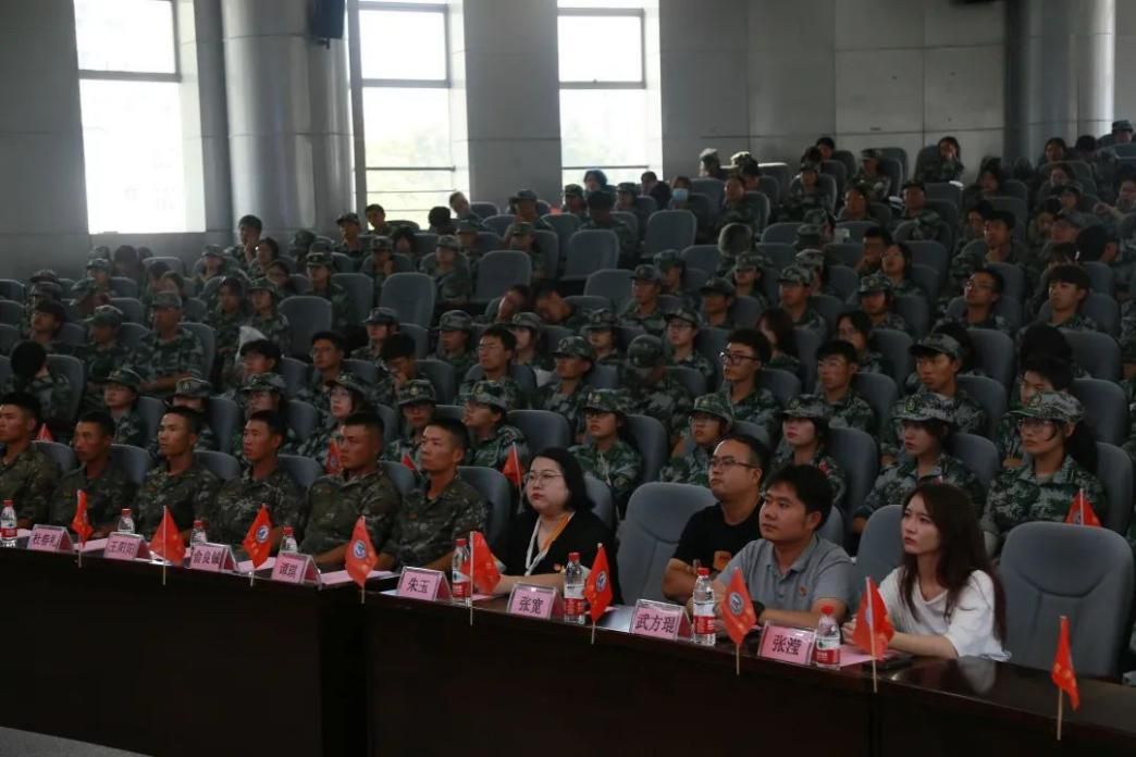 梧桐兼细雨,丹桂伴微风。2023级新生军训接近了尾声,永利集团88304官网在线登录团委邀请到学院军训教官参与到“牢记嘱托、感恩奋进”示范性班团活动中。学院团委工作负责老师、军训分队队长谭琪中尉,营长俞良铖等8名教官及学院全体新生在2教报告厅参与活动。