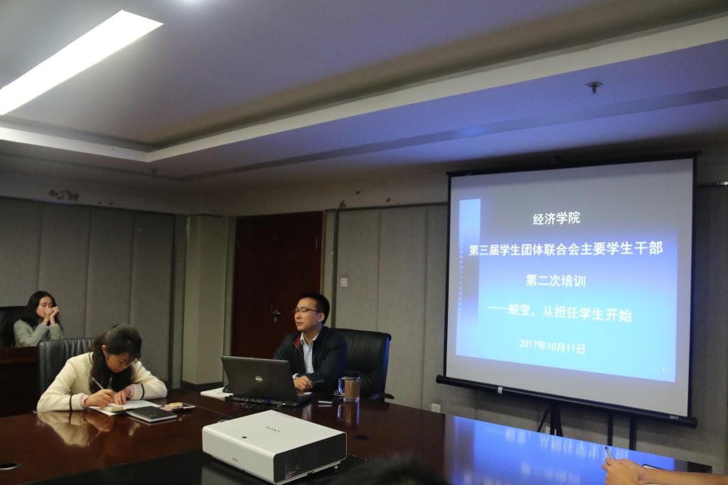 10月11日晚,永利集团88304官网在线登录在1-408会议室召开2017-2018-1学期第三次学生团体联合会主干培训会,学院党委副书记何仁辉、学院党委办主任蔡丹出席了此次会议,学院学生团体联合会主席团及各骨干到场参加。