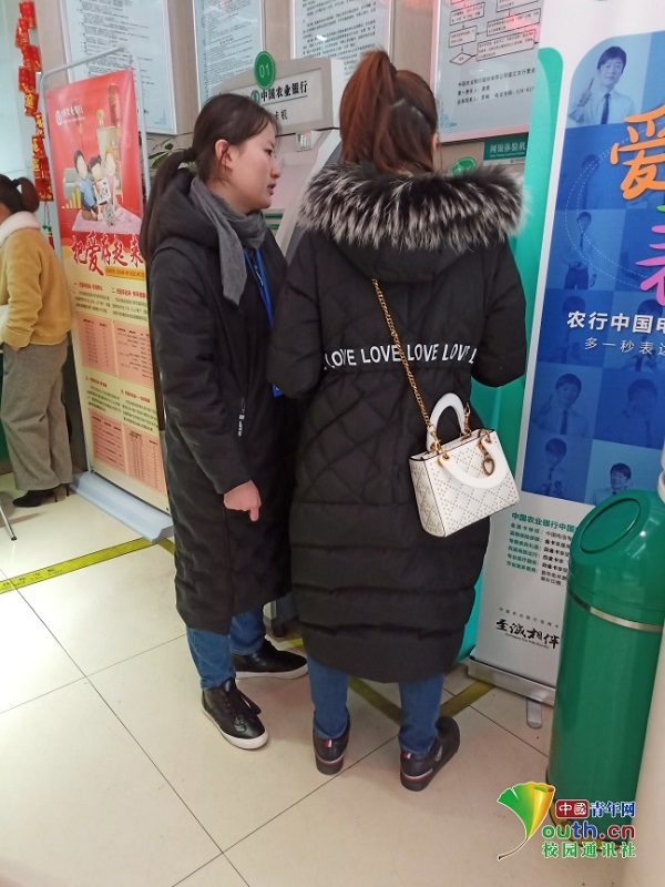 有时遇到年迈的客户来存取钱时,同学们更加细心、耐心,为他们解释,引导他们操作银行设备。当为客户们办完业务,客户们的一句“谢谢你啊”,让大家倍感温暖和干劲。银行的大堂经理对大家也称赞:“这几个实习生真不错,之前坚持到过年才回家。春节后又这么早来,简直给我们扎起了嘞!”