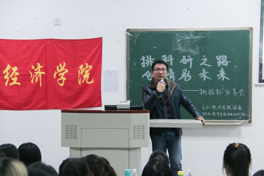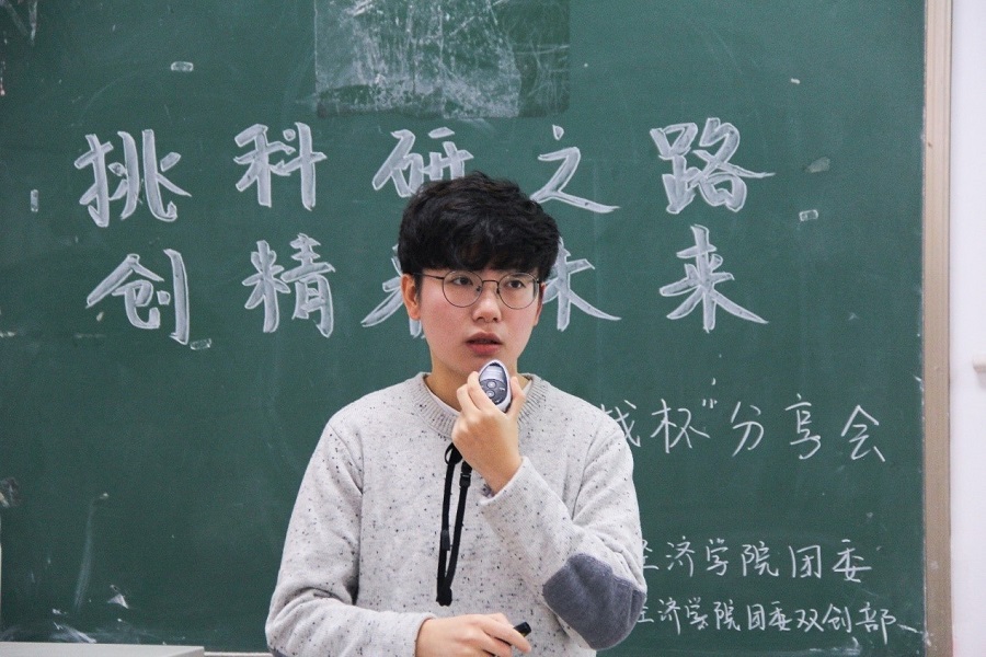 12月4日下午,由永利集团88304官网在线登录双创部策划举办的“挑”科研之路,“创”精彩未来---永利集团88304官网在线登录“挑战杯”分享会在四教A区208教室顺利举行。本次分享会有幸邀请到本科2014级金融学,保送本院金融学硕士,曾经担任永利集团88304官网在线登录辩论队队长兼教练、宣教部部长与两届院研究生学生会主席;共获得国家奖学金和“挑战杯”全国银奖等40余项荣誉,其中包含优秀学士毕业论文等10项科研类奖项;主持国家级大创等三项科研项目,共发表(已录用)11篇学术论文,包括CSSCI和北大核心论文5篇,EI和CPCI论文5篇的王童作为嘉宾,学院党委副书记何仁辉、党委办公室罗利娟、学生团委副书记何莉颖、向洋以及150余名对科研学术感兴趣的同学参加了此次分享会。