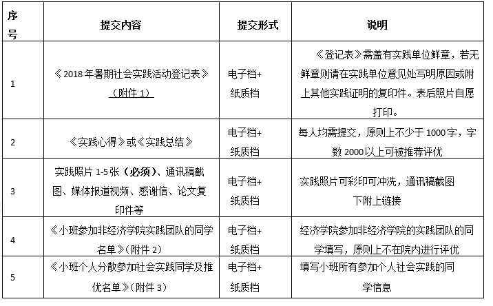 注:1-3要求每位参与社会实践的同学填写提交,4-5由小班团支书填写。所有材料由团支书收齐后一并提交。