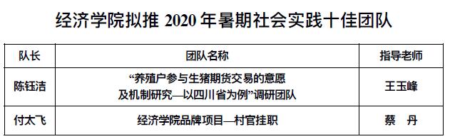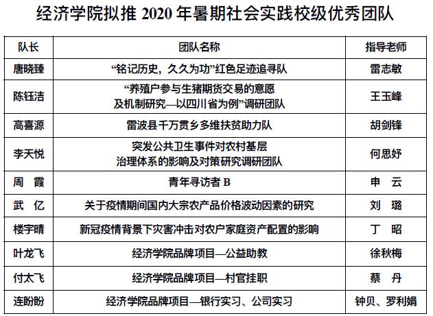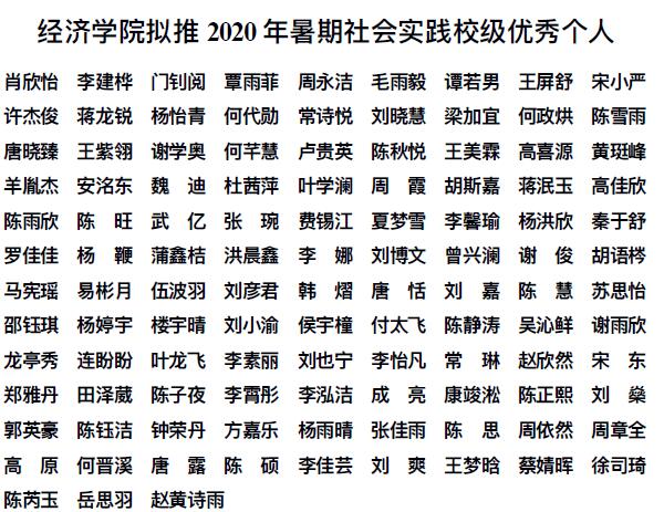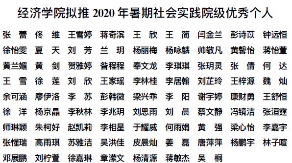 根据校团委《关于开展2020年大学生暑期社会实践评优表彰工作的通知》,经过个人自荐、团支部评议,团队申请、答辩,学院团委评审,拟表彰以下团队和个人,现予公示如下。