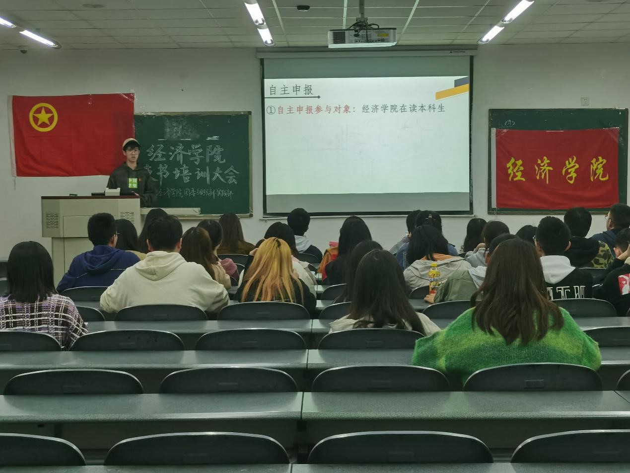 学院团委实践部副部长胡语梣讲解了公益助教、村官挂职、公司实习、银行实习四大社会实践品牌项目相关事项,并对团支书在社会实践版块的相关工作提出了建议。