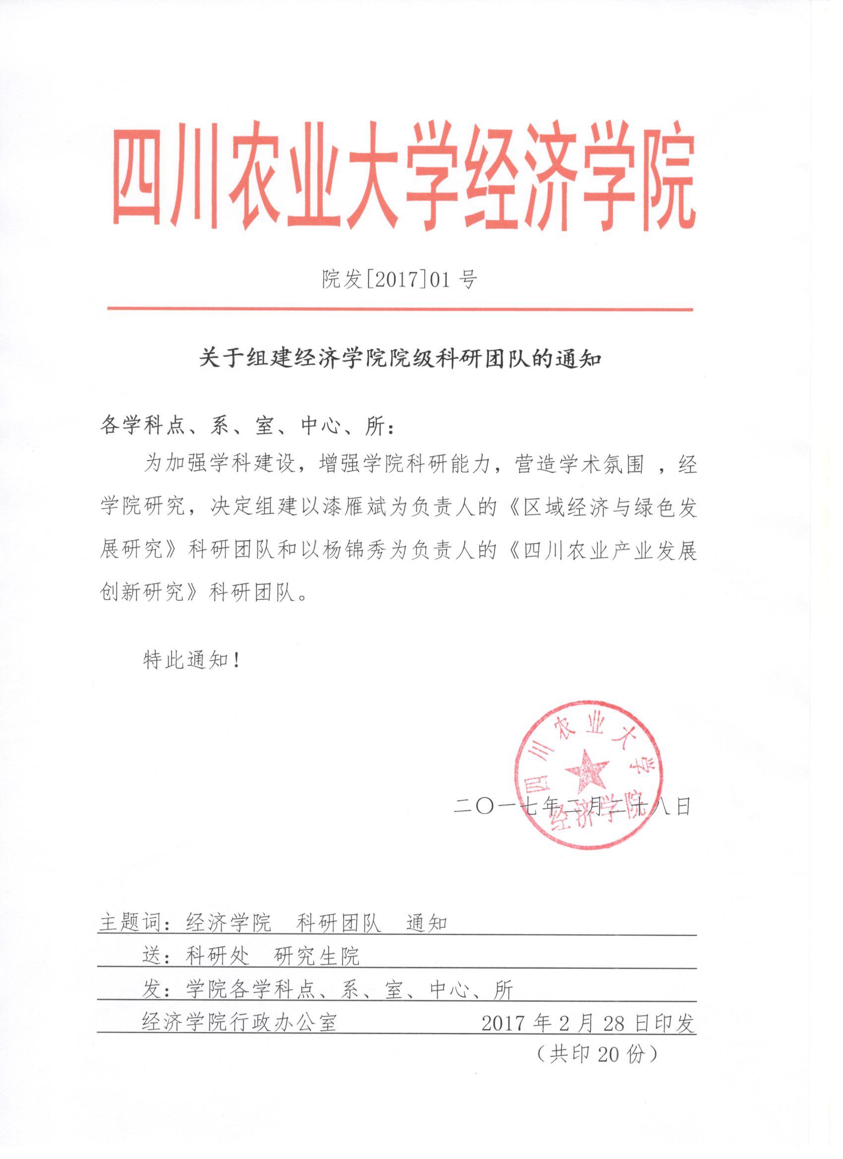 院发【2017】1号 关于组建永利集团88304官网在线登录院级科研团队的通知