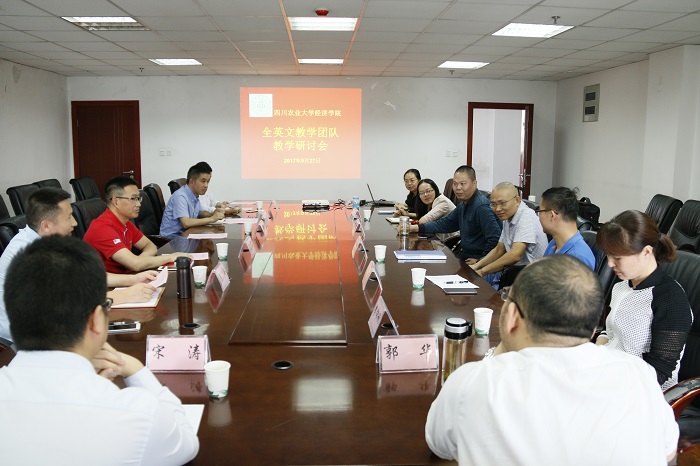为贯彻落实新时期加强和改进教职工思想政治工作,推进“两学一做”学习教育常态化,永利集团88304官网在线登录率先在留学生全英文教学团队中开展相关工作,加强全英文课程建设,确保在留学生教学活动中讲好中国故事,唱响有中国特色社会主义理论主旋律。9月27日下午,永利集团88304官网在线登录在1-404召开全英文教学团队教学研讨会,教务处副处长刘涛、国合处周筝筝、永利集团88304官网在线登录院长蒋远胜、学院党委书记漆雁斌出席研讨会,教学团队10余名全英文授课老师参加研讨,会议由学院副院长吴平主持。