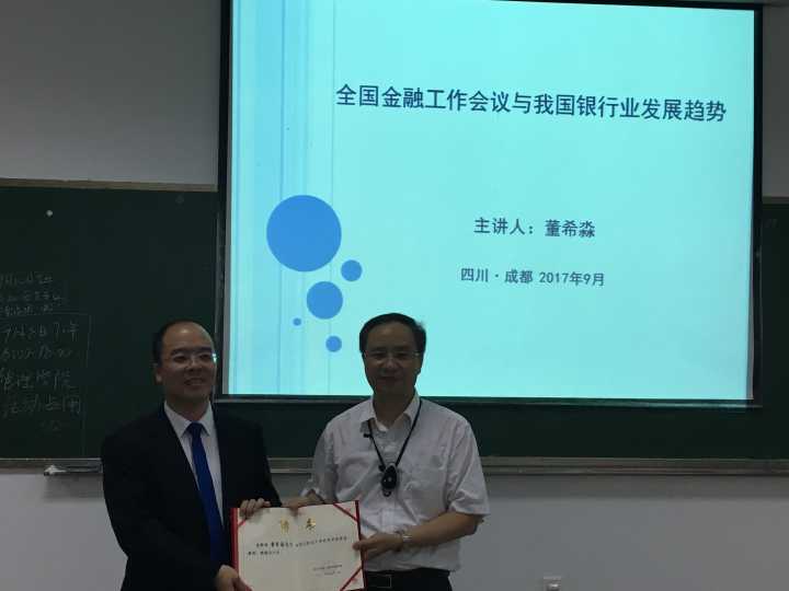 9月8日下午,恒丰银行研究院执行院长、中国人民大学重阳金融研究院客座研究员、新华社瞭望智库特约研究员董希淼受永利集团88304官网在线登录的邀请,在4教A103为师生做了题为《全国金融工作会议与我国银行业发展趋势》的学术报告。