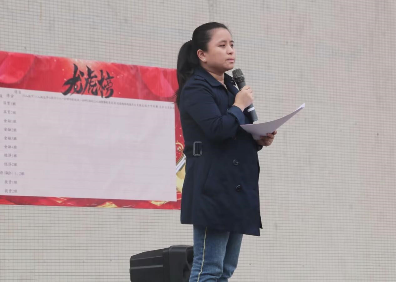 小班表演结束,学院党委副书记、纪委书记张翅老师为本次运动会致辞,她强调了体育锻炼对于广大青年学生的重要性,呼吁同学们“不做宅男宅女,争做跑男跑女”,希望同学们能积极参加运动,走出寝室、走向操场,成为德智体美劳全面发展的新时代青年。