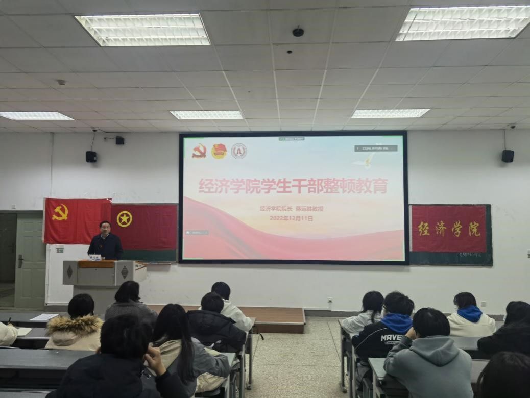 12月11日,学院院长蒋远胜在学生干部整顿教育大会上作“坚持‘三个务必’,做堪当民族复兴重任的好学生、好干部”整风讲话。学院全体辅导员与95名学生党支部支委、本科生主要学生干部一起聆听了讲话。
