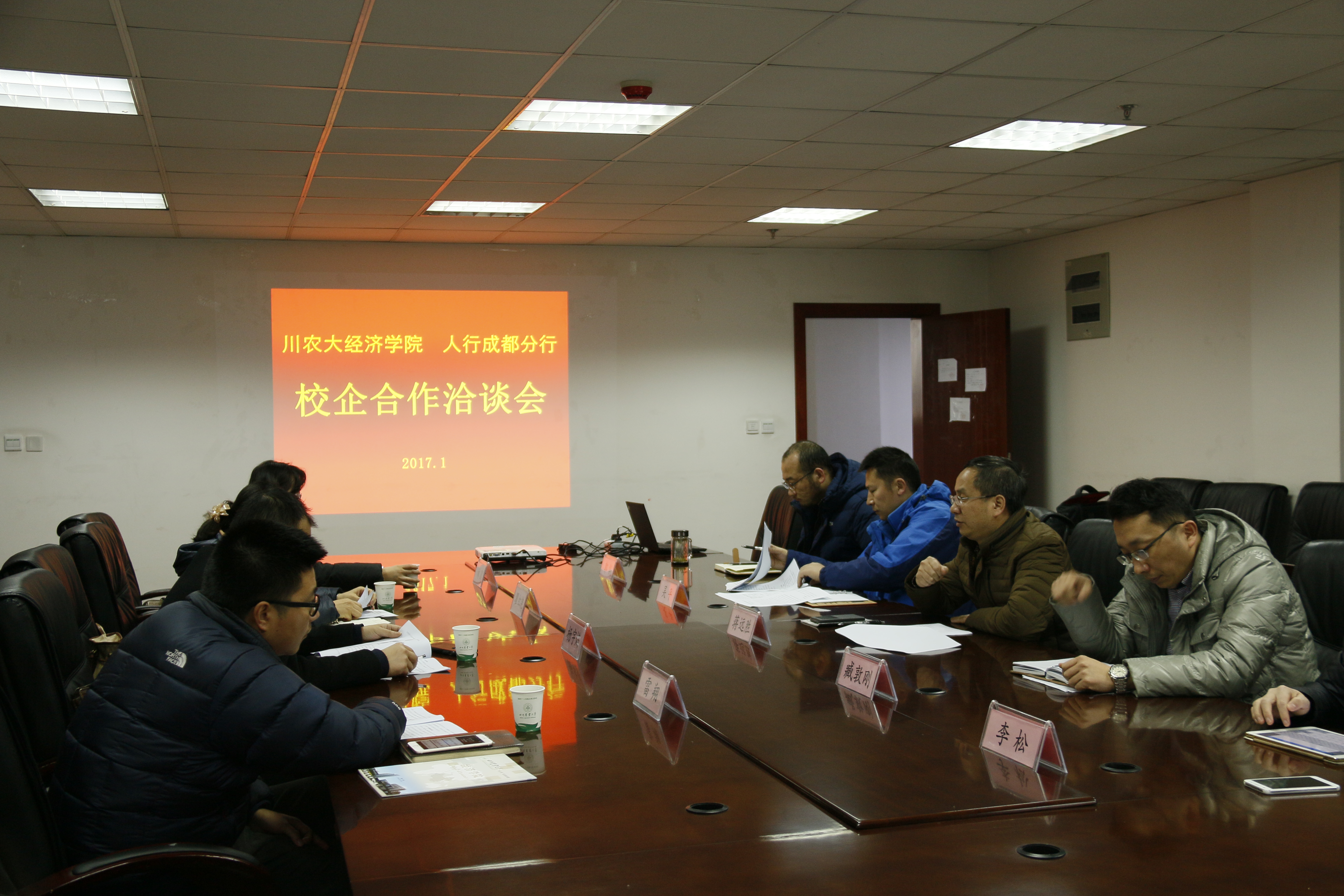 1月17日,永利集团88304官网在线登录与中国人民银行分行校企合作洽谈会在成都校区1教406成功举行。人民银行成都分行金融研究处副处长、省金融学会副秘书长杨宇焰、营业管理部货币信贷处副处长瞿红艳及永利集团88304官网在线登录院长蒋远胜、副院长吴平参与座谈。