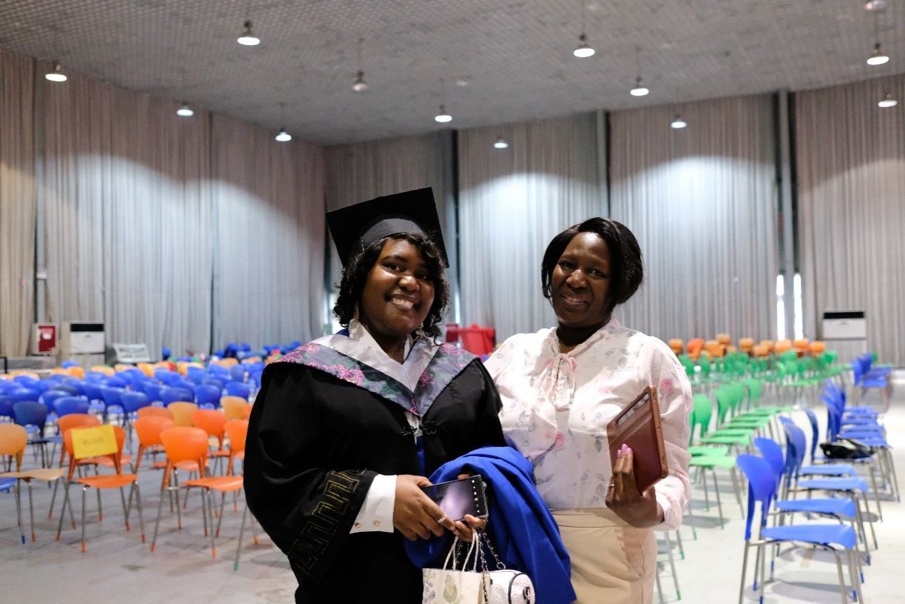 国际学生本科班的Chibisa Vivienne Vimbai表示,在川农的经历是充满趣味的,这里有和谐的学校氛围、认真负责的老师和许多友善的同学,让她在异国他乡也能感受到温暖和善意。被礼堂喜悦的气氛所感染,Vivienne和母亲的脸上都绽放着笑容,她母亲激动地说:“我等这一刻等了好久了!”2023届毕业生中共有26名来自一带一路沿线国家的求学者,在川农老师的教育下,他们变得更加优秀。而今日他们都将离开川农,饱含着对川农的感激和不舍,他们对未来一带一路的求学者们说到:“生活就像一次旅程,所以努力向前吧,每一步都会带你走向成功。”