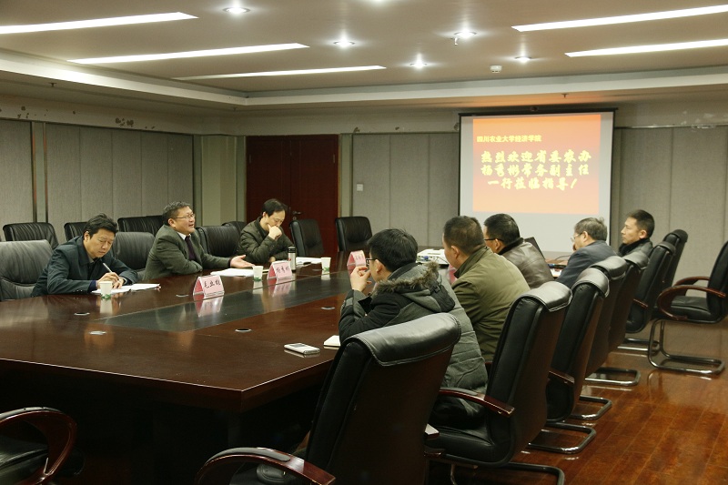 2017年1月11日下午,中共四川省委农村工作委员会常务副主任杨秀彬率领省委农工委副主任毛业雄、省农委政策法规研究处处长王晓勇一行莅临永利集团88304官网在线登录指导工作并与师生进行了深入交流座谈。永利集团88304官网在线登录全体院领导班子以及部分教师和研究生代表参会。座谈会由院长蒋远胜教授主持。