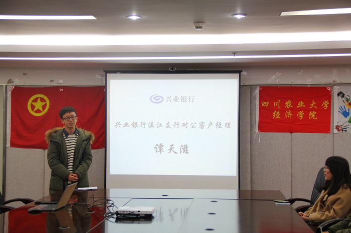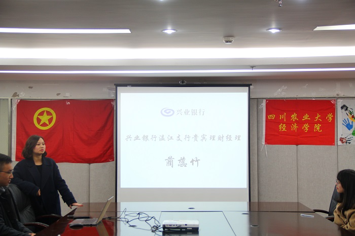 12月21日,永利集团88304官网在线登录在1教408会议室举办兴业银行专场实习交流会。兴业银行温江分行零售负责人方洁、贵宾理财经理蔺蕊竹、对公客户经理谭天滋、贵宾理财师刘芊莅受邀莅临座谈会。学院党委副书记何仁辉、团委书记兼党委办公室副主任钟贝和对兴业银行有从业志向的同学参加会议。