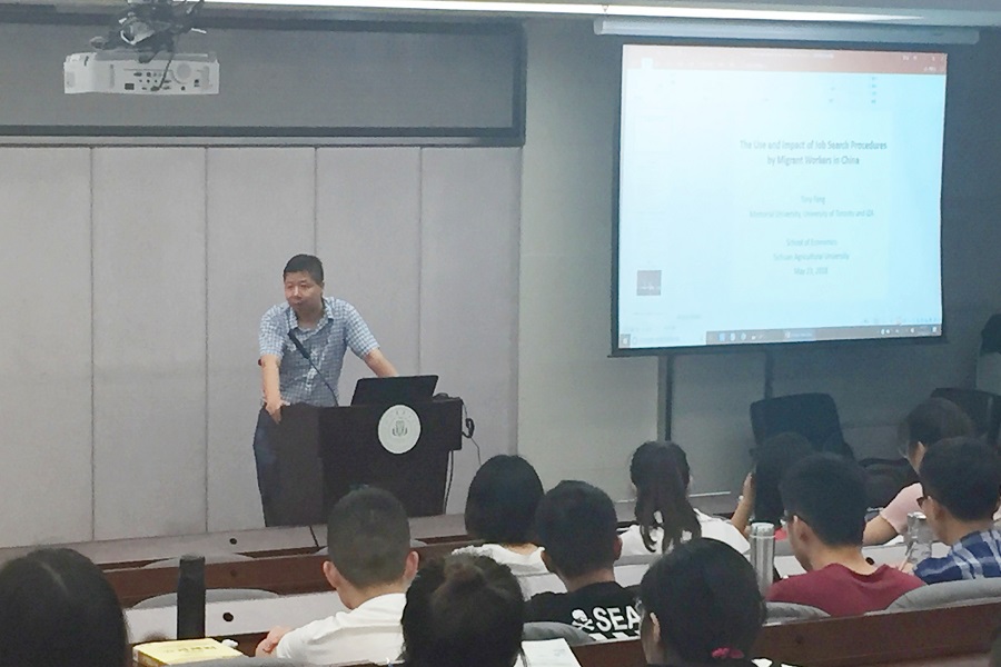 Jarislowsky讲席教授方涛为广大师生做了题为“农民工与城乡劳动力市场机制研究”的专题学术讲座。讲座由学院副院长吴平教授主持,投资学系、经济学系、区域经济与金融研究所、西南减贫与发展研究中心老师出席了本次讲座,部分金融学、经济学本科生研究生参加了此次讲座。