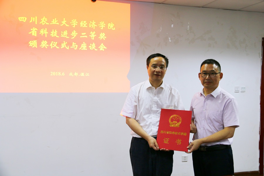 据悉,由蒋远胜院长主持完成的四川省科技进步二等奖获奖成果“新型农村合作医疗的需求理论、管理制度和公共政策”是永利集团88304官网在线登录建院以来获得的第一项省级科技进步奖二等奖,对促进永利官网科研工作再得硕果,再攀高峰具有积极的影响作用。会后,漆雁斌书记、吴平副院长为课题负责人蒋远胜院长及课题组老师颁奖留影。
