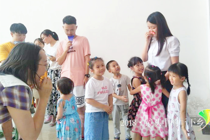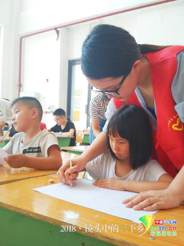 实践队员在教孩子们画画 中国青年通讯员 陈逸 摄