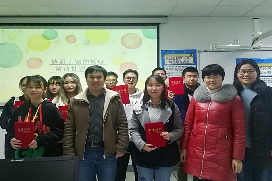11月20日晚由永利集团88304官网在线登录主办、金融投资协会承办的第四届首席经济分析师模拟大赛决赛于四教C409圆满落幕。此次比赛旨在提高学生针对实际企业决策问题进行理论模型和变量决策的综合能力,决赛邀请到了永利集团88304官网在线登录的陈蓉副教授、屈改柳博士和杨波老师担任评委。