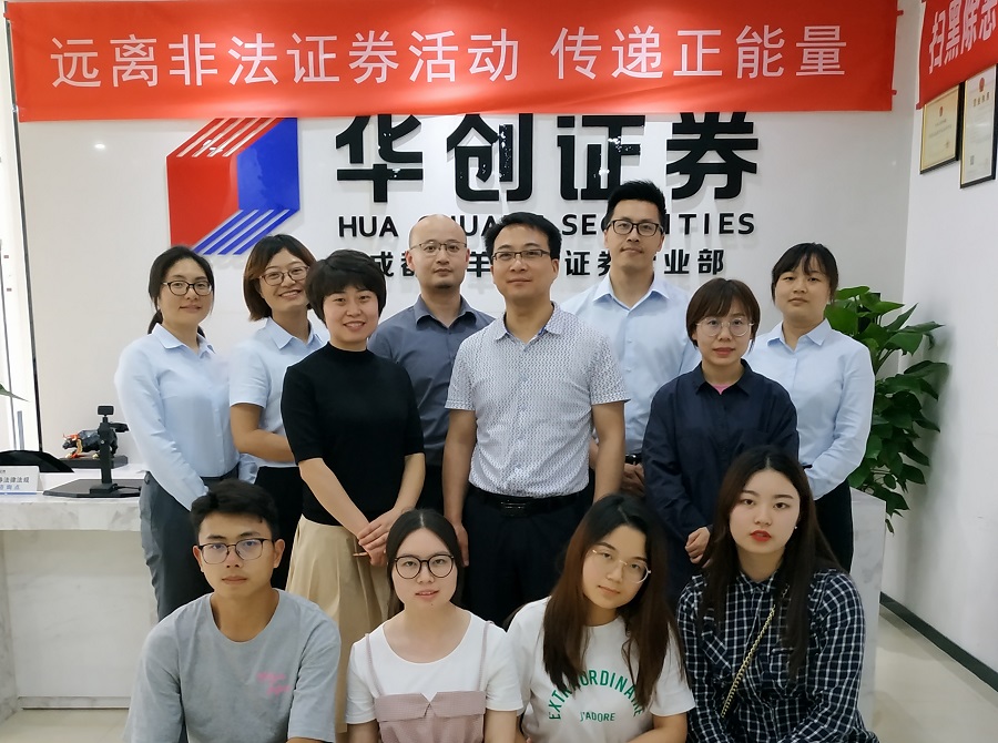 下午4时许,大家来到华创证券有限责任公司成都青羊大道营业部。营业部总经理姚烜对何仁辉副书记一行的到来表示热情欢迎。姚烜总经理介绍了华创证券的基本情况,并兴奋地讲述了自己曾经的同事中以及在今年的新员工招聘中接触到的川农学生给他留下的美好印象,所以营业部今年准备录用的4名应届毕业生都是川农的。双方还就学生实习实践的岗位设置、技能培训、考核管理、就业引导等进行了深入的交谈,达成了诸多共识,并签订了教学实习、社会(就业)实践基地协议。何仁辉对姚烜总经理所带领的团队所展显的热情、敬业和务实给予了高度评价,表示对双方的合作非常有信心,对川农学子入职华创证券后的事业发展更有信心。据悉,华创证券有限责任公司为上市企业华创阳安股份有限公司的控股子公司,系一家全国性综合金融服务机构,是中国证券业协会理事单位、上海证券交易所理事单位,中国证监会首批互联网证券试点券商,管理资产规模超过2300亿元,现有分公司9家、证券营业部70家。