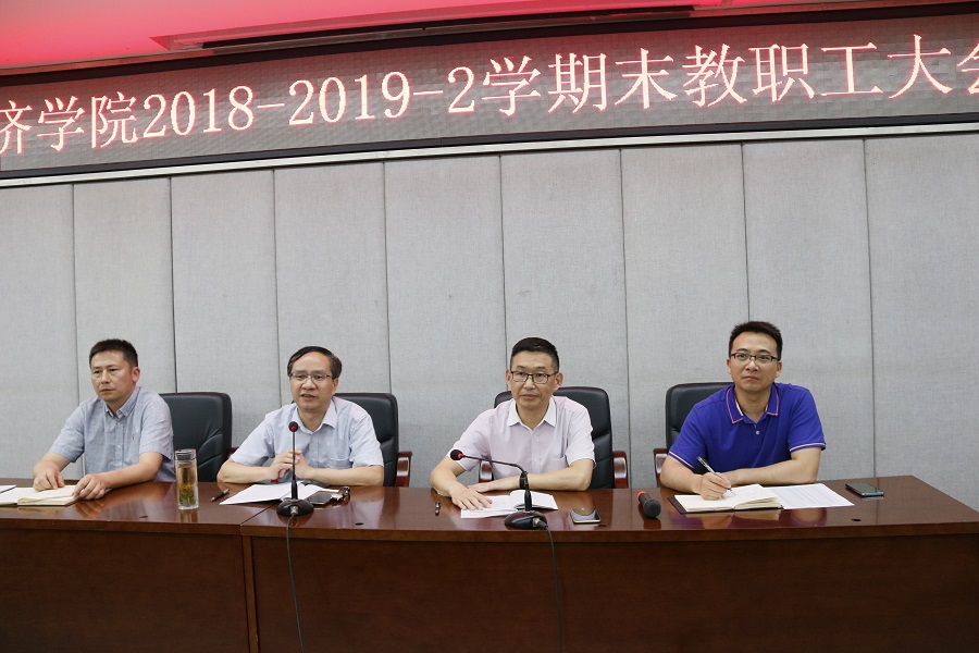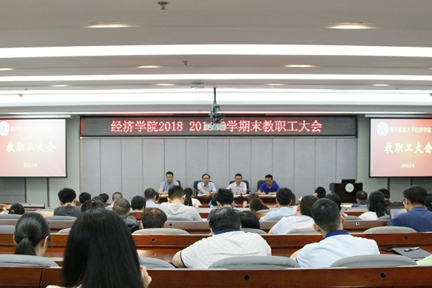 会上,院长蒋远胜从5个方面回顾了本学期工作。一是师资队伍进一步壮大。本学期学院新进了5位老师,壮大了学院师资队伍,提升了学院教学、科研能力;10人次老师参与高等学校国家级实验教学示范中心联席会议等培训;3人参加井研县、雅安市国资委等挂职锻炼;4人入选“天府万人计划人选”。二是本科教学成效显著。今年有556名本科生成功授位,授位率达99.6%;经济学进入学校一流本科专业建设,金融学进入省级一流本科专业建设;4名老师分别获学校教学质量奖第一名、第二名,1名老师获全国性讲课比赛三等奖;三是研究生培养质量进一步提升。今年87名硕士研究生和3名博士研究生顺利毕业,3篇论文获评校级优秀论文。四是科研工作取得新突破。今年学院获得4项国家社科基金项目立项,创永利官网历史新高;承担了6项横向课题。五是国际化办学稳步推进。永利官网5名同学入选公派留学项目,接收法国交换生10余名,中外合作办学全英文班将于下学期正式开班。基于本学期奠定的基础和取得的成绩,蒋远胜对假期和下学期工作作出安排,强调各系室要召开教研会议,各学科点要加强规范性建设,科学研究和社会服务要进一步推进,新进老师要迅速融入教学团队,积极备课,进入状态。