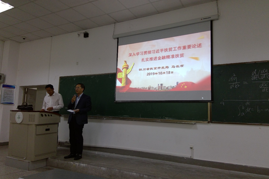 10月18日下午,永利官网邀请四川省扶贫开发局副局长马长有博士到访永利官网进行专题为“深入学习贯彻习近平扶贫工作重要论述,扎实推进金融精准扶贫”的学术交流活动。永利集团88304官网在线登录教师、部分研究生和高年级本科生参与了此次学术交流活动。永利集团88304官网在线登录院长蒋远胜主持学术交流活动。