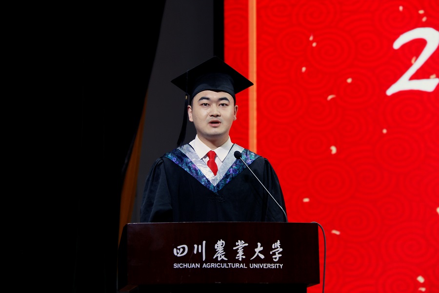 毕业生代表陈豪对全体老师表达了真挚的谢意,分享了以综合成绩专业第一考入永利官网金融学攻读硕士研究生的成长故事,对在学校学院的四年青春岁月和学生干部经历尤为感触,他以“追求真理、造福社会、自强不息”的校训和“厚德博学、经世济民”的院训,祝福同学们带着川农人、经济学人的自信和勇敢,迎接未来生活中的种种挑战。