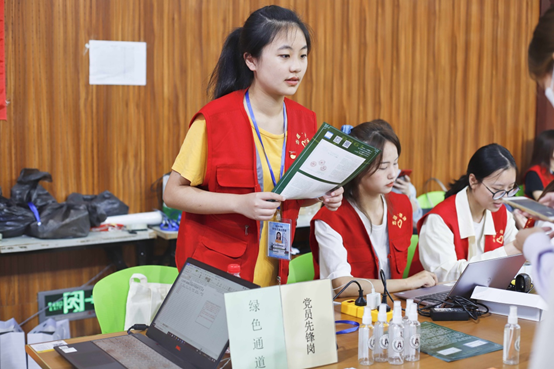 “同学您好,请出示一下您的录取通知书!”一大早,党员和入党积极分子们就早早来到党员先锋岗位上,为当天的迎新工作铆足劲、做准备。他们以热情饱满的话语给予新生到校后的第一声问候,用以身作则的言行示范党员应发挥的先锋模范作用。学院在迎新点设立“党员先锋岗”,学生党员们挂着统一的志愿者工作证,胸前佩戴党员徽章,坚守在迎新第一线。