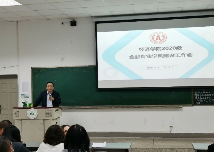 会议上,系主任臧敦刚副教授简单介绍了金融学专业2020级的情况,并向大家介绍了金融学专业入选批国家级一流本科专业建设点的情况以及给各位同学带来的机遇,以此激励同学们在提高学习成绩以及综合素质等方面更加积极、努力,学院也将以一流本科专业建设为契机,加大投入力度,推进人才培养模式改革,力争国家级一流专业建设实现突破,进一步修订和完善人才培养方案,提高对同学们的培养和就业质量。同时,臧敦刚副教授就2020级金融专业新生在2020-20201-1学期期末考试中存在侥幸心理,存在考试作弊的行为提出了严厉批评,并告诫同学们必须诚信考试,杜绝拒绝作弊的可耻行为。