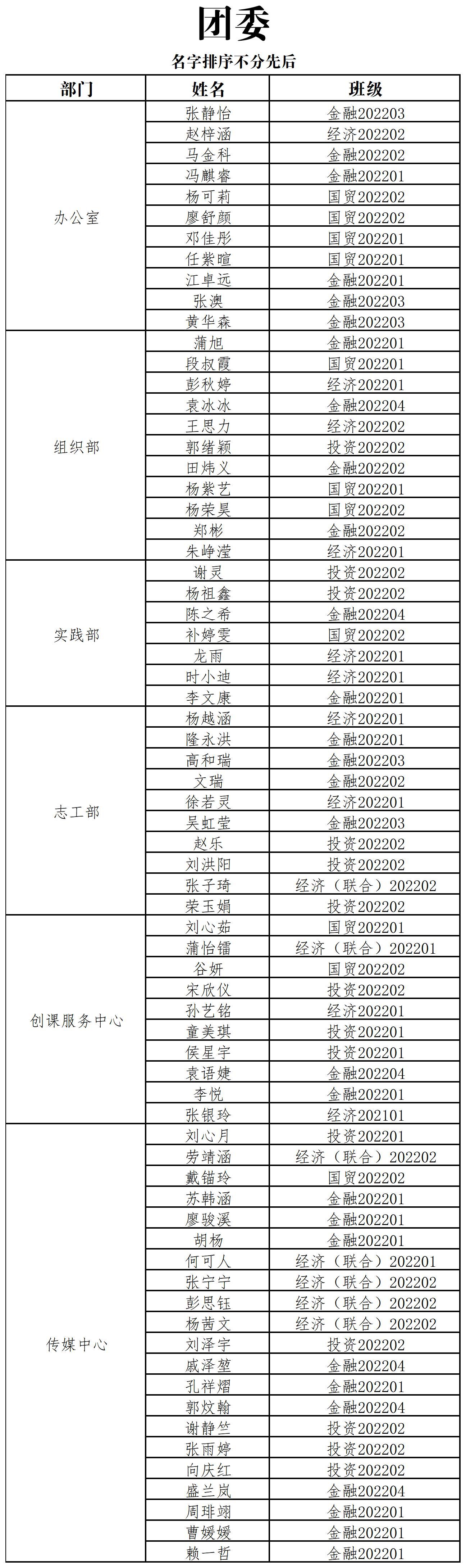 经试用期考核、民主测评,团委审批,确定永利集团88304官网在线登录第八届学生团体联合会新进成员名单,现将名单公示如下: