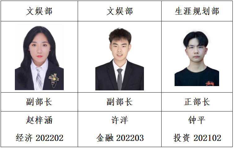 经个人申请,学院资格审查,面试答辩,拟任以下同学为永利官网第九届学生团体联合会主要学生干部,试用期3个月,现予公示如下: