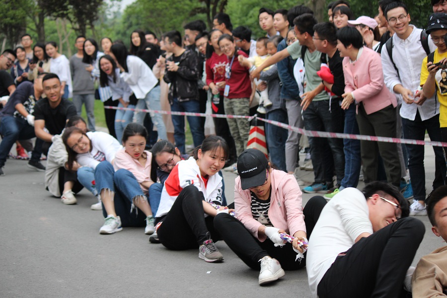 后勤服务人员和啦啦队成员更是早早来到现场,为拔河队员们缠裹纱布,加油助威。随着裁判的一声令下,所有拔河队员使尽全力,周围助威的呐喊声震耳欲聋,在输掉第一回后,永利官网队员越挫越勇,迅速调整战略在第二回合夺回一分,接着乘胜追击以2:1的比分赢得了这场比赛。