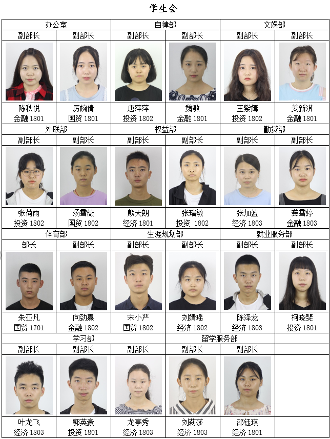 经个人申请,学院资格审查,面试答辩,拟任以下同学为永利官网第五届学生团体联合会主要学生干部,试用期3个月,现予公示如下: