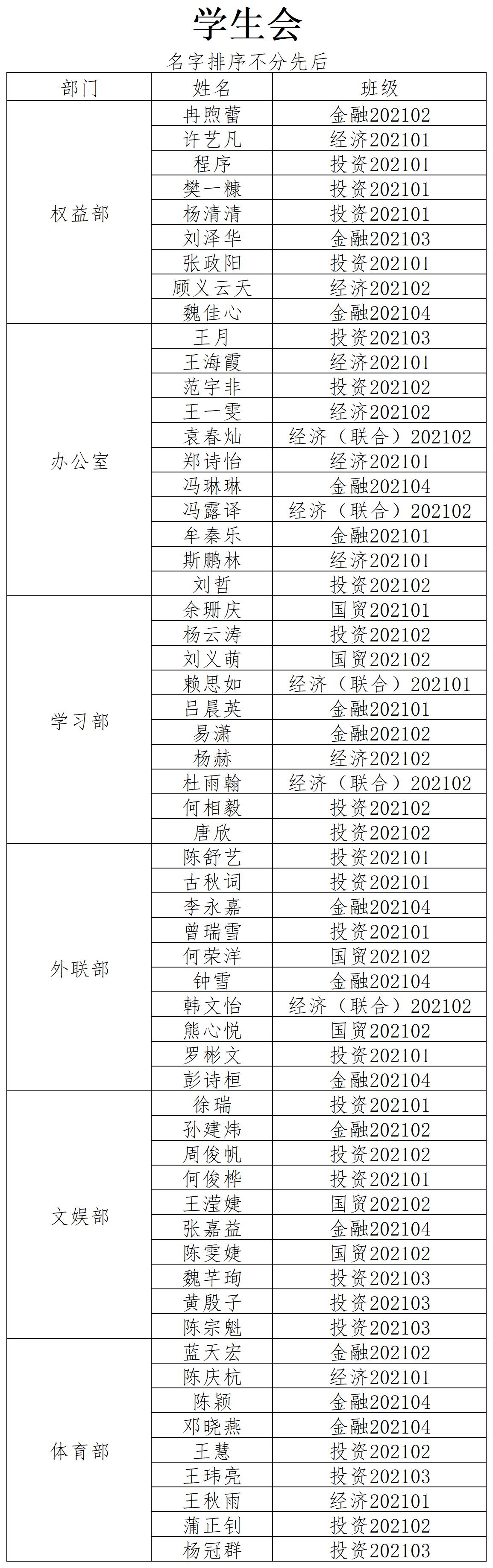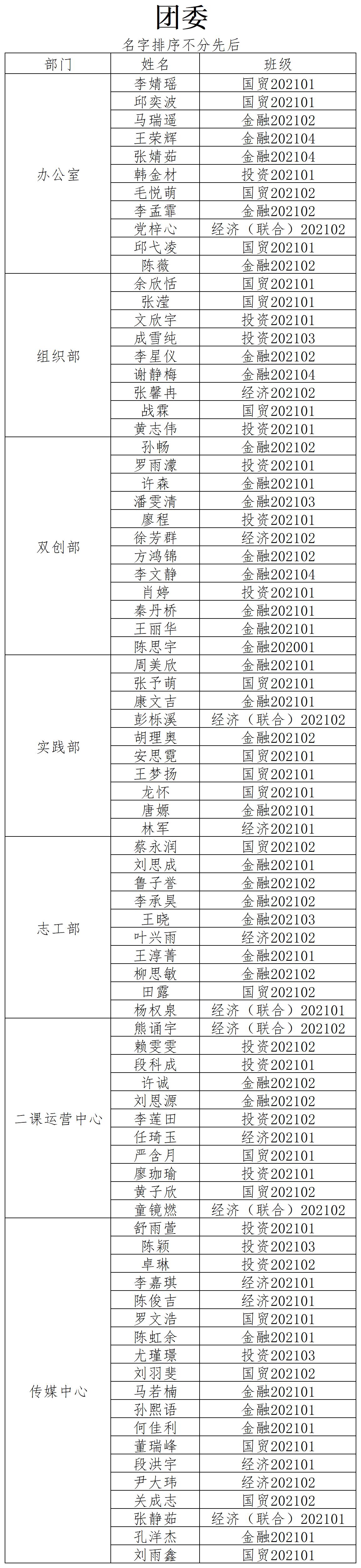 经试用期考核、民主测评,团委审批,确定永利集团88304官网在线登录第七届学生团体联合会新进成员名单,现将名单公示如下:
