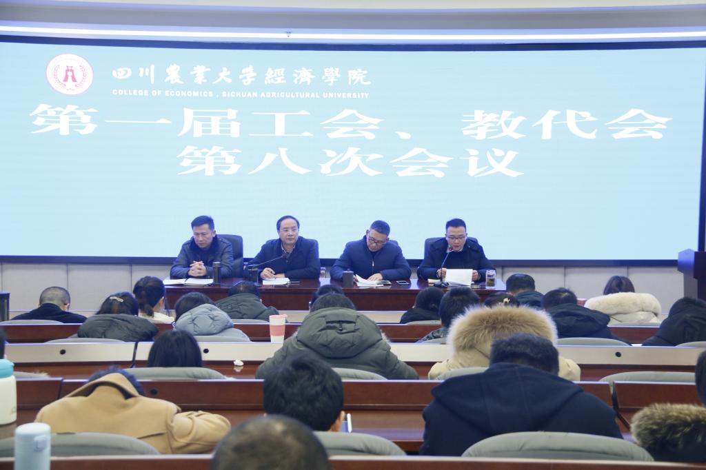 1228下午,学院第一届工会、教代会第次会议在1309会议室召开。院长蒋远胜,党委书记漆雁斌,党委副书记、纪委书记、工会主席何仁辉,副院长吴平,教代会主席兼工会副主席李阳明,全院职工参加了会议。